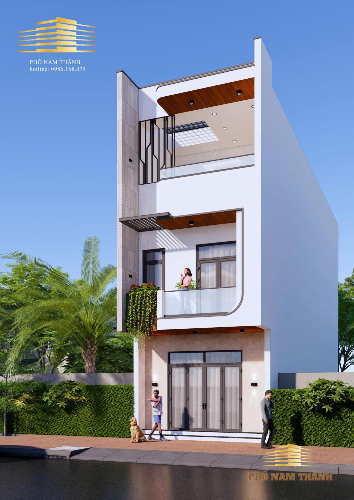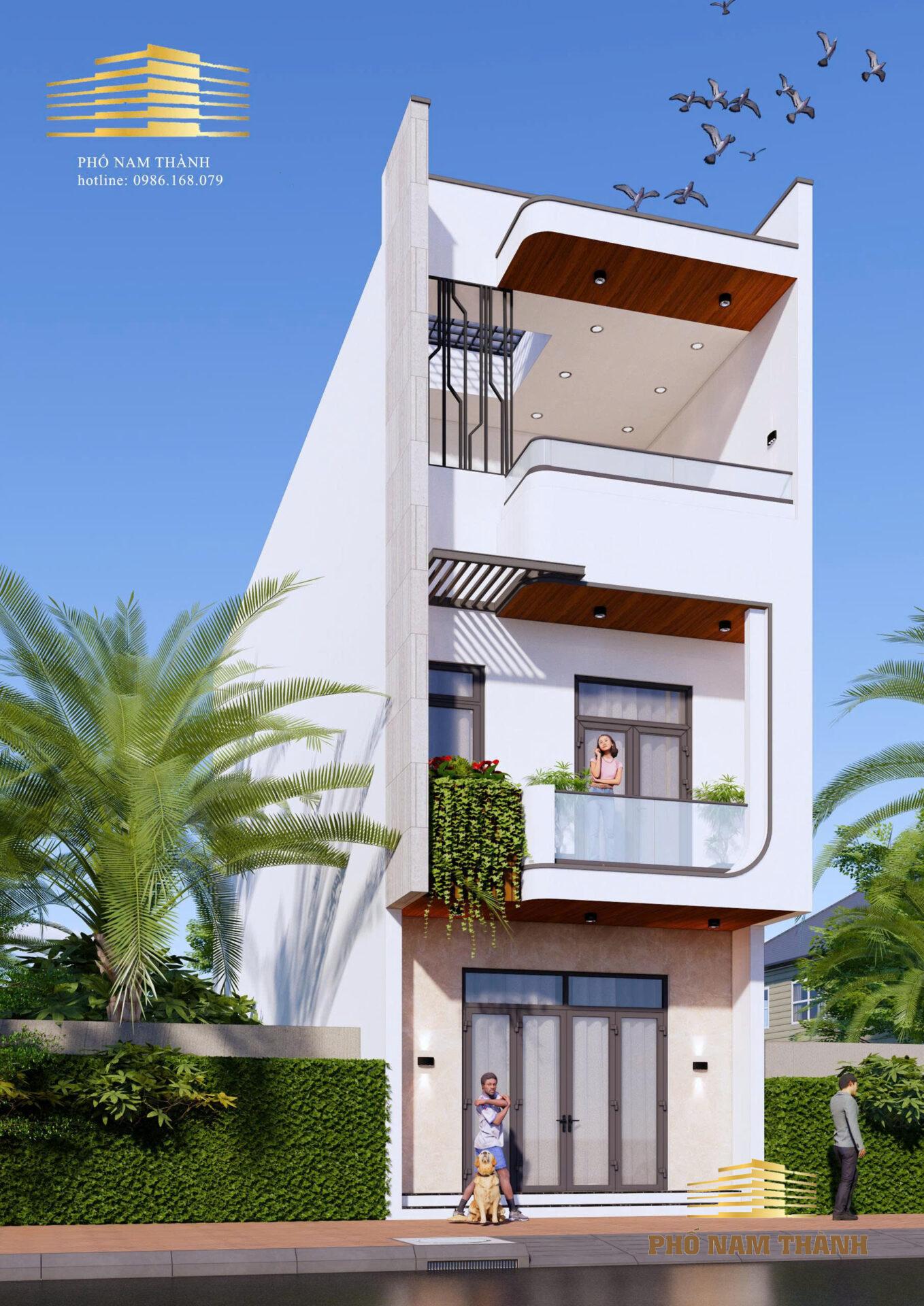 .mẫu nhà phố ba tầng trong ảnh thực sự là một chuẩn mực cho phong cách kiến trúc hiện đại: tối giản, tinh tế và tối ưu không gian xanh. Dưới đây là bài viết gợi ý để bạn có thể dùng đăng bài giới thiệu hoặc làm tư liệu tham khảo cho ngôi nhà mơ ước này. Mẫu Nhà Phố 3 Tầng Hiện Đại: Bản Giao Hưởng Giữa Ánh Sáng Và Không Gian Xanh Trong bối cảnh đô thị “đất chật người đông”, việc sở hữu một ngôi nhà vừa đảm bảo công năng, vừa mang tính thẩm mỹ cao là bài toán mà nhiều gia chủ quan tâm. Mẫu thiết kế nhà phố 3 tầng dưới đây chính là câu trả lời hoàn hảo cho những ai yêu thích sự trẻ trung và phóng khoáng. 1. Kiến Trúc Ngoại Thất Đột Phá Điểm nhấn đầu tiên của ngôi nhà chính là ngôn ngữ hình khối mạnh mẽ. Sự kết hợp giữa những đường thẳng dứt khoát và các góc bo tròn mềm mại ở ban công tầng 2 và tầng 3 tạo nên một tổng thể hài hòa, không hề đơn điệu. • Tông màu chủ đạo: Sử dụng màu trắng thanh lịch kết hợp cùng ốp trần gỗ ấm áp và đá vân sang trọng ở tầng trệt. • Hệ thống cửa: Cửa kính khung nhôm xingfa cao cấp giúp đón trọn ánh sáng tự nhiên, tạo cảm giác không gian rộng mở và thoáng đãng hơn diện tích thực tế. 2. Sự Kết Hợp Tuyệt Vời Với Thiên Nhiên Dù là nhà phố, yếu tố “xanh” vẫn được ưu tiên hàng đầu: • Ban công tầng 2: Được bố trí bồn hoa với cây leo rủ xuống, tạo thành một “bức rèm” tự nhiên xanh mát. • Sân thượng tầng 3: Thiết kế theo dạng không gian mở (open-air), lý tưởng để làm khu vực BBQ, cà phê ngoài trời hoặc vườn rau sạch cho gia đình. 3. Công Năng Sử Dụng Tối Ưu Với cấu trúc 3 tầng, ngôi nhà dễ dàng bố trí đầy đủ các khu vực chức năng: • Tầng 1: Phòng khách sang trọng, bếp và phòng ăn tích hợp, tạo không gian sinh hoạt chung ấm cúng. • Tầng 2: Không gian riêng tư với các phòng ngủ khép kín, đảm bảo sự yên tĩnh và thoải mái. • Tầng 3: Phòng thờ, phòng đa năng (gym/văn phòng) và sân thượng thoáng gió.
